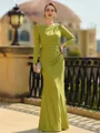 Elegant Sheath/Column Jersey Ruched Scoop Long Sleeves Floor-Length Mother of the Bride Dresses