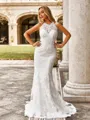 • Elegant Sheath Scoop Sweep Train Lace Wedding Dress