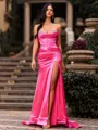 A stunning sheath prom dress featuring an off-the-shoulder, sleeveless design adorned with sparkling rhinestones. Flowing into a graceful sweep train, it offers a glamorous and sophisticated silhouette perfect for formal events and special occasions.