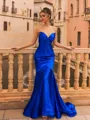 • Enchanting Mermaid Silk Like Satin Pleated Sweetheart Sleeveless Sweep Train Prom Dress
