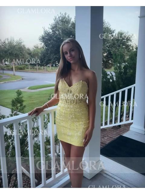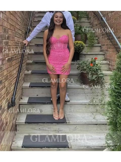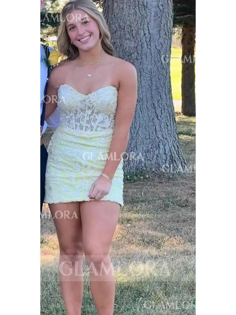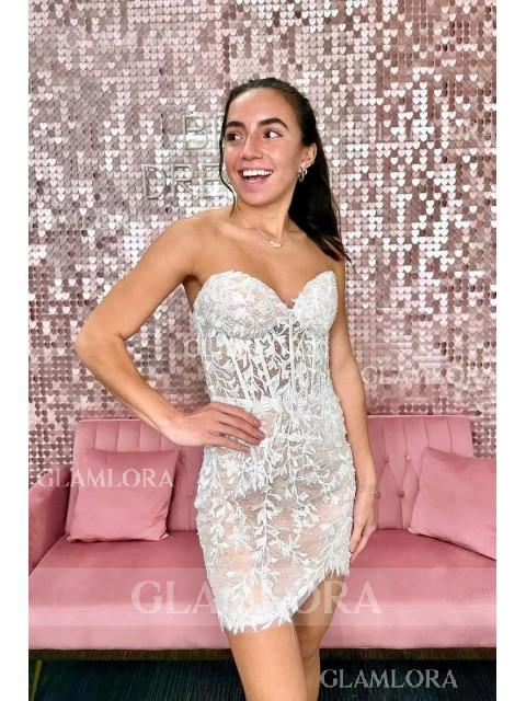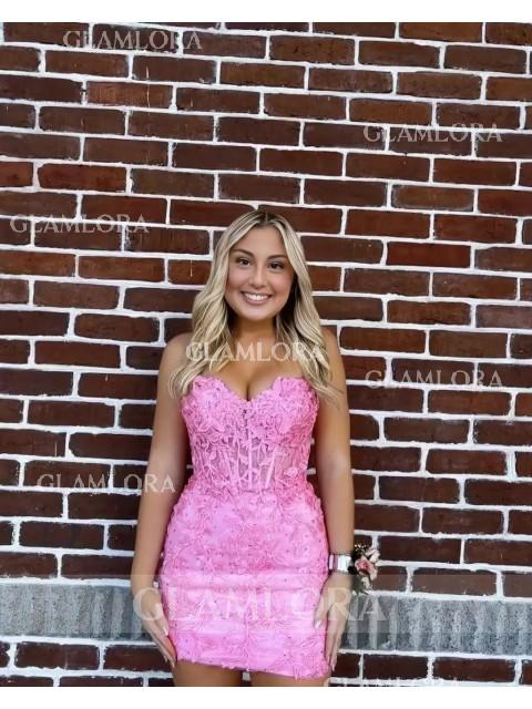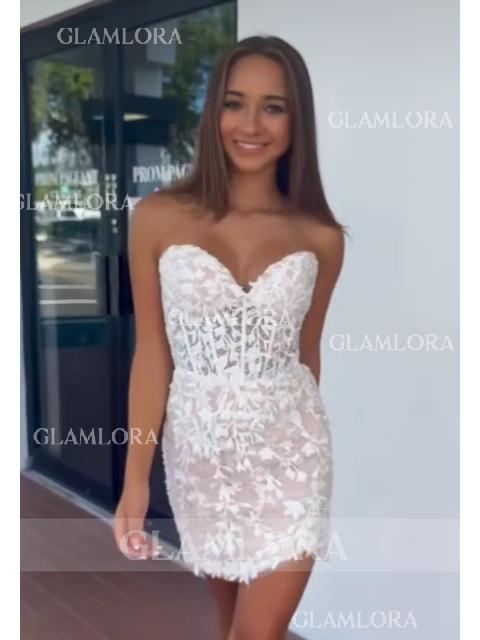 Enchanting Sheath Corset Appliques Lace Short/Mini Homecoming Dress - Glamlora