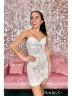 This sheath dress with corset bodice, and lace appliques, offering a captivating short/mini look.