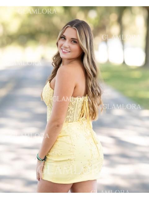 Enchanting Sheath Corset Appliques Lace Short/Mini Homecoming Dress