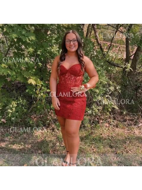 • Enchanting Sheath Corset Appliques Lace Short/Mini Homecoming Dress