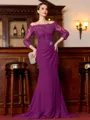 • Endearing Sheath Chiffon Applique Off-the-Shoulder 3/4 Sleeves Sweep Train Mother of the Bride Dress