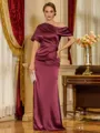 • Endearing Sheath One-Shoulder Short Sleeves Pleated Floor-Length Silk Like Satin Mother of the Bride Dress