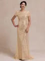 • Endearing Sheath Scoop Short Sleeves Sweep Train Mother of the Bride Dress