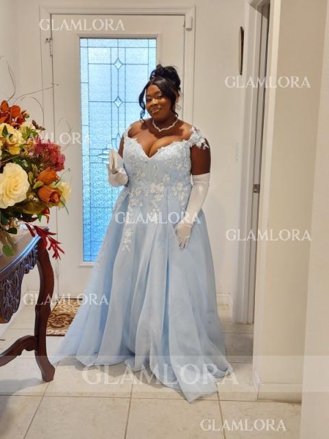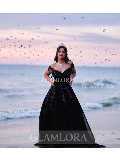 • Exquisite A-line Princess Off-the-Shoulder Sleeveless Floor-Length Tulle Prom Dress With Applique