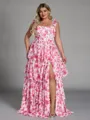 This A-line bridesmaid dress features slender straps and a sleeveless design for a light, elegant look. Cascading ruffles add movement and feminine charm. The corset bodice shapes the waist, while the floor-length skirt creates a graceful silhouette-perfect for plus size bridal parties.