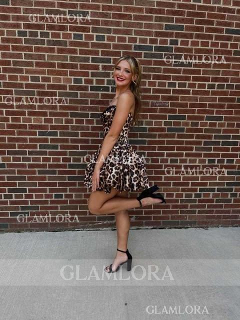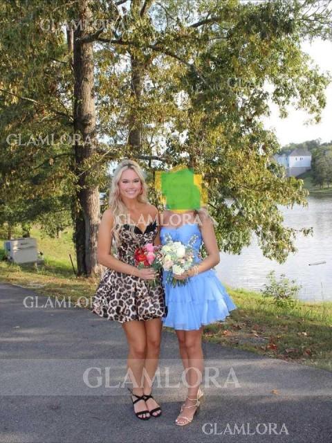 This A-line mini dress features a romantic sweetheart neckline and a fitted corset bodice that highlights the waist. The skirt is decorated with delicate ruffles, adding softness and movement for a graceful, feminine look. Ideal for parties, proms, or special occasions.