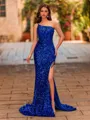 • Exquisite Sheath One-Shoulder Sweep Train Velvet Sequins Prom Dress
