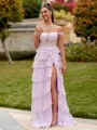 • Extravagant A-line Off-the-Shoulder Appliques Lace Sweep Train Tulle Corset Prom Dress