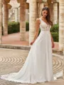 • Extravagant A-Line/Princess Chiffon Lace V-Neck Sleeveless Court Train Wedding Dresses