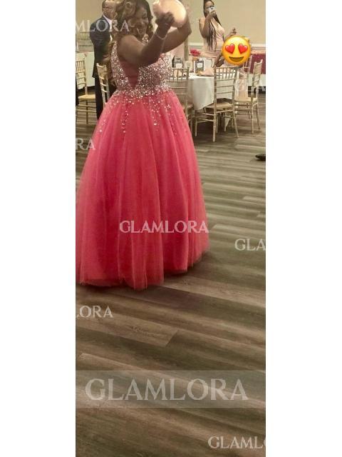 • Fashion A-line V-Neck Sleeveless Floor-Length Tulle Evening Dress