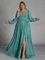 • Fashion-forward A-line V-Neck Long Sleeves Pleated Floor-Length Chiffon Plus Size Bridesmaid Dress