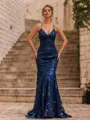 A fashion-forward mermaid prom dress crafted from intricate lace, featuring a flattering V-neckline and a sleeveless design for a bold, modern look. The figure-hugging silhouette and sweep-train hem create a refined, dramatic effect perfect for making a stylish and unforgettable entrance.