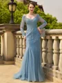 • Fashion-forward Sheath/Column Tulle Applique V-Neck Long Sleeves Sweep Train Mother of the Bride Dresses