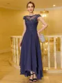 Flattering A-Line Chiffon Applique Scoop Short Sleeves Asymmetrical Mother of the Bride Dress