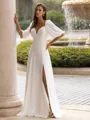 • Flattering A-Line/Princess Chiffon Ruched Off-the-Shoulder 1/2 Sleeves Floor-Length Wedding Dress