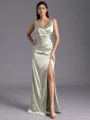 The A-line/Princess silk like satin V-neck Sleeveless Floor-Length Bridesmaid Dress is a sleek and elegant choice. Featuring a flattering A-line silhouette, deep V-neck, and flowing floor-length skirt, it combines style and comfort, perfect for a sophisticated bridal party look.