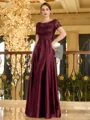• Flattering A-line Scoop Short Sleeves Appliques Lace Floor-Length Silk like Satin Mother of the Bride Dress