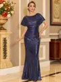 Flattering Sheath Scoop Short Sleeves Pleated Floor-Length Sequins Corset Mother of the Bride Dress