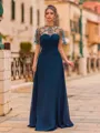 A glamorous A-line prom dress crafted from flowing chiffon, adorned with delicate beading for a subtle sparkle. The scoop neckline and short sleeves add a touch of elegance, while the sweep-train silhouette creates a graceful, eye-catching look perfect for making a stylish entrance.
