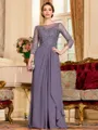 • Glamorous A-Line Chiffon Lace Scoop 3/4 Sleeves Floor-Length Mother of the Bride Dress