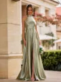 • Glamorous A-line Halter Bow Floor-Length Silk Like Satin Bridesmaid Dress