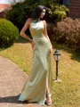 • Glamorous A-line Halter Floor-Length Silk Like Satin Bridesmaid Dress