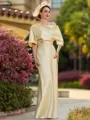 • Glamorous Sheath/Column Charmeuse Ruched Off-the-Shoulder Short Sleeves Floor-Length Mother of the Bride Dresses