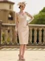 • Glamorous Sheath/Column Satin Lace V-Neck Long Sleeves Knee-Length Mother of the Bride Dresses