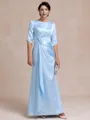 Glamorous Sheath Scoop 1/2 Sleeves Pleated Floor-Length Silk like Satin Mother of the Bride Dress