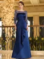 • Glamorous Sheath Scoop Long Sleeves Pleated Floor-Length Satin Mother of the Bride Dress