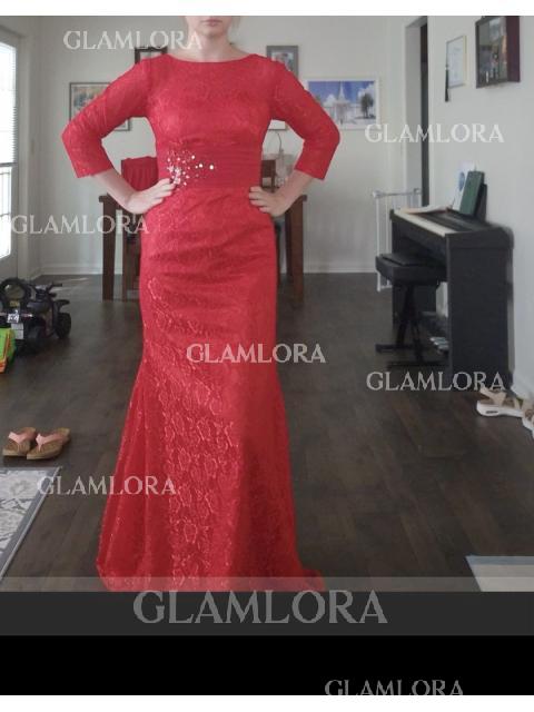 Warning: Undefined property: Product::$size_chart in /data1/www/glamlora-com.myamz2022.com/htdocs/controllers/front/ProductController.php on line 1062 Glamorous Trumpet/Mermaid Bateau 3/4 Sleeves Sweep Train Silk like Satin Evening Dress With Lace - Glamlora