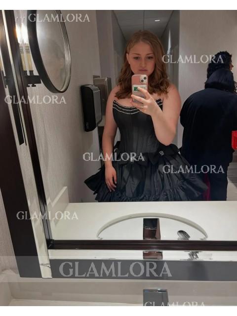 This delightful short/mini dress combines the elegance of a ball-gown silhouette with charming details. Designed in a straight, structured style, the dress exudes sophistication and grace. The sleeveless cut enhances its modern appeal, ideal for showcasing shoulders and arms. Crafted from luxurious taffeta fabric, the dress offers a smooth, lustrous finish that adds to its refined appearance. A standout feature is the oversized bow detail, placed strategically to accentuate the waistline and add a touch of whimsical charm. Perfect for formal events or special occasions, this dress blends classic elegance with playful elements, ensuring a memorable and stylish presence.