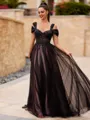 • Graceful A-line Cold Shoulder Appliques Lace Sweep Train Tulle Corset Prom Dress