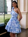 Graceful A-line Halter Cascading Ruffles Short/Mini Homecoming Dress