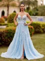 Graceful A-line Sweetheart Appliques Lace Sweep Train Tulle Corset Prom Dress
