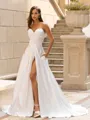 • Gracious A-Line/Princess Satin Ruched Sweetheart Sleeveless Sweep/Brush Train Wedding Dress