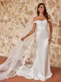 • Grand Sheath/Column Silk like Satin Ruched Off-the-Shoulder Sleeveless Sweep/Brush Train Wedding Dresses