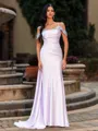 An elegant sheath prom dress featuring a cold shoulder, sleeveless design with delicate pleating. Crafted from silk-like satin, it flows into a graceful sweep train, creating a sophisticated and timeless silhouette perfect for formal events and special occasions.