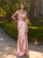 • Hermosos Sheath Off-the-Shoulder Pleated Floor-Length Silk like Satin Bridesmaid Dress