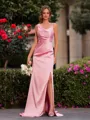 • Hermosos Sheath Straps Pleated Floor-Length Silk Like Satin Bridesmaid Dress