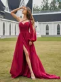 This elegant A-line dress features a stylish one-shoulder design with long sleeves, crafted from lightweight chiffon for a flowing silhouette. Adorned with intricate beading along the neckline and sleeve, it adds a touch of sparkle and sophistication. The sweep train enhances the graceful movement, making this dress perfect for formal events or special occasions.