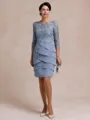 Impeccable Sheath Scoop 3/4 Sleeves Appliques Lace Knee-Length Chiffon Mother of the Bride Dress