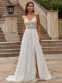 • Luxurious A-Line/Princess Chiffon Lace V-Neck Sleeveless Court Train Wedding Dresses