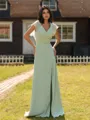 • Luxurious A-line V-Neck Short Sleeves Pleated Floor-Length Chiffon Bridesmaid Dress