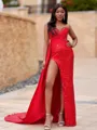 • Luxurious Sheath Sweetheart Pleated Floor-Length Silk Like Satin Prom Dress