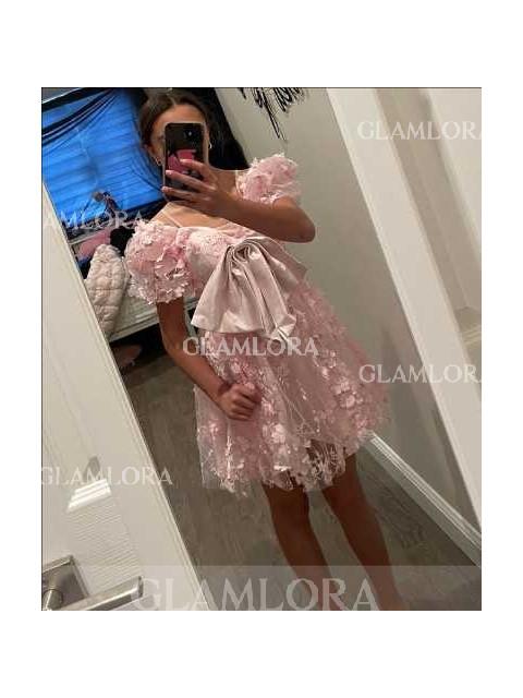 • Magnificent A-line Sweetheart Short Sleeves Bow Short/Mini Lace Homecoming Dress